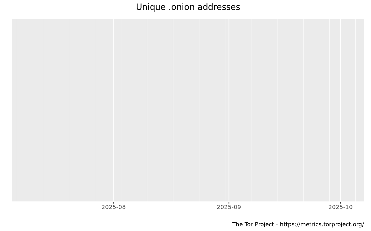 This graph shows the number of unique .onion addresses for version 2 onion services in the network per day. These numbers are extrapolated from aggregated statistics on unique version 2 .onion addresses reported by single relays acting as onion-service directories, if at least 1% of relays reported these statistics. For more details on the extrapolation algorithm, see this blog post and this technical report.