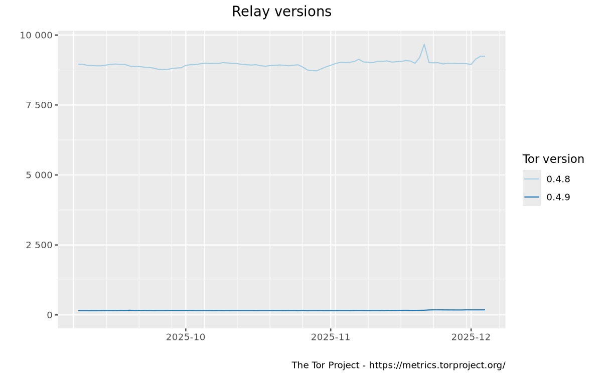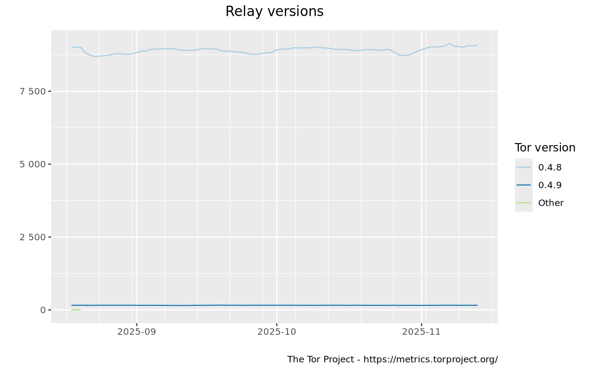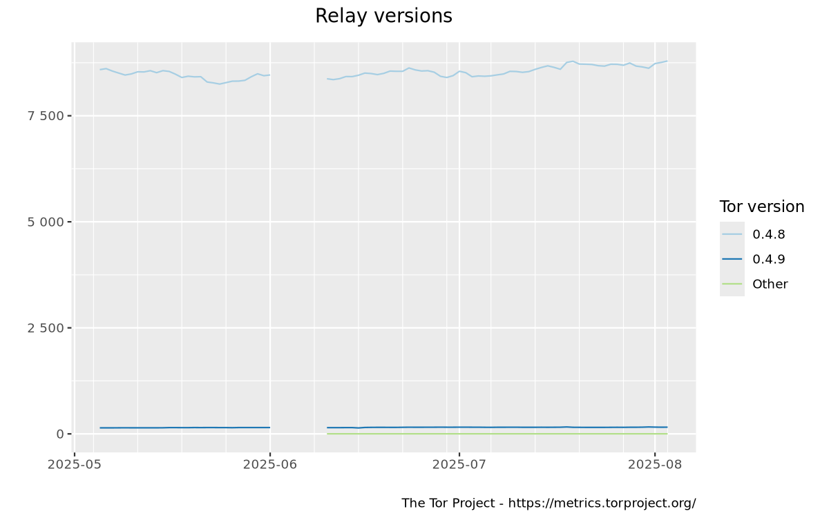 This graph shows the number of running relays by tor software version. Relays report their tor software version when they announce themselves in the network. New major versions are added to the graph as soon as they are first recommended by the directory authorities. More details on when these versions were declared stable or unstable can be found on the download page and in the changes file.